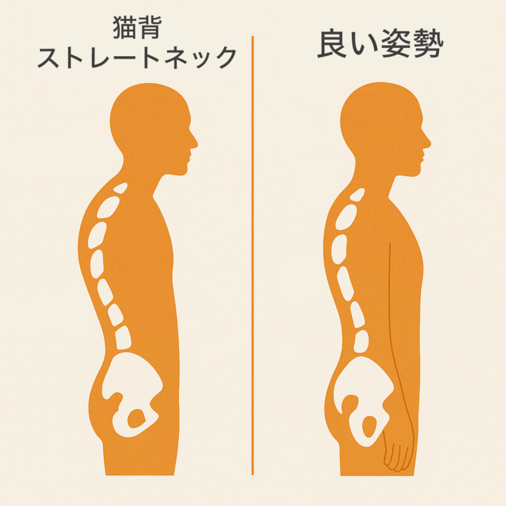 猫背や骨盤を改善すれば首や頭が前に出にくくなるため、頭を正常の位置に保ちやすくなります。